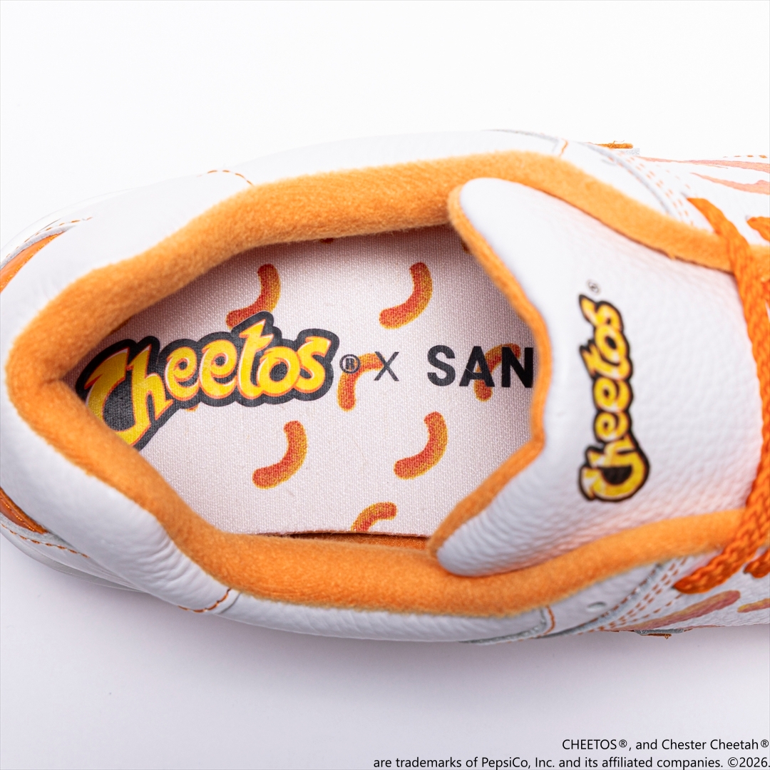 ー 抽選販売 ー『チートス×SANGACIO』限定コラボスニーカー■ 遊び心を本気で仕上げた限定モデル世界中で愛されるスナック『チートス』そのポップでカワイイ世界観をスニーカーへ。ハンドメイドのこだわりと、お菓子のカルチャーをスニーカーというアイテムを通して融合したアイコニックな一足。■ コーデに遊び心をポップなオレンジが足元のアクセントに。シンプルなデニムやジャケットスタイルに合わせるだけで、程よい抜け感と愛嬌をプラス。主張はあるのに、どこかチャーミング。大人のコーデに“遊び”を効かせる一足。ーーーーーーーーーーーーーーーーーーー『抽選販売』にて当選者のみ購入可能です。≪商品詳細≫商品 : にゅ~ず 『CHEETOS』価格 : 33,000円(税込、送料無料)素材 : シボレザー(牛革)サイズ : 22.0cm~30.0cm※女性は普段サイズより0.5cm小さめがおすすめ。≪抽選詳細≫応募締切:5/6(水)抽選日:4/20(月)、4/27(月)、4/30(木)、5/7(木)