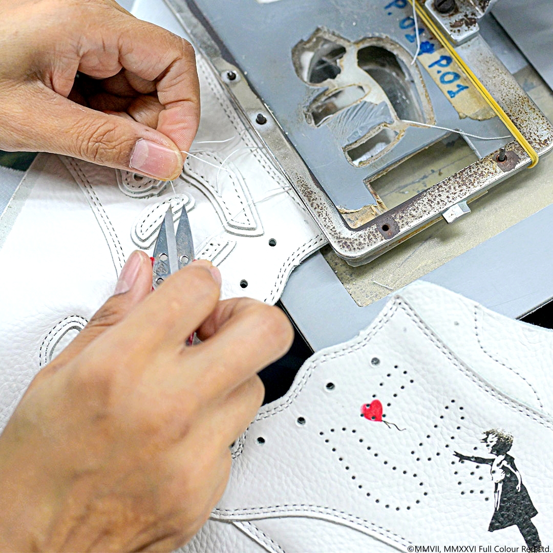 純白のスニーカーへアートのように落し込みました。