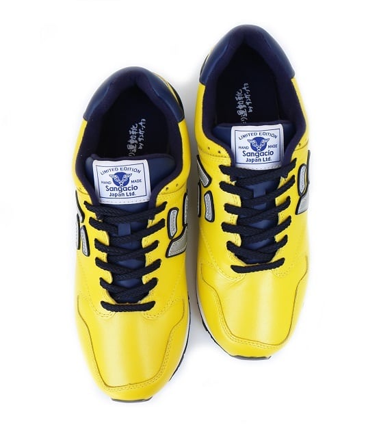 輝くメタリックイエローのアッパーに